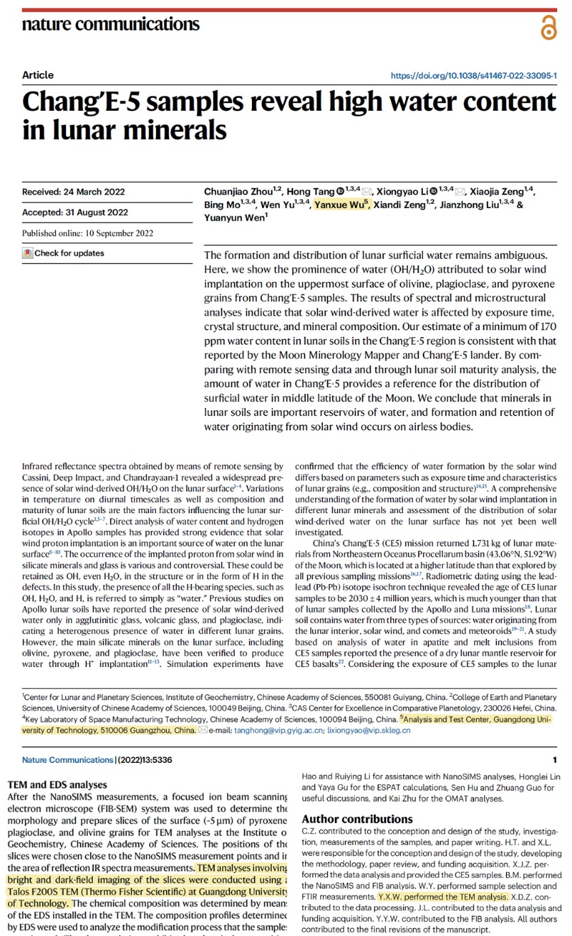 该研究证实了月表矿物是水的重要“储库”,为月表中纬度地区水的分布提供了重要参考。这一成果日前在国际学术期刊《Nature Communications》发表。该成果被国内包括人民日报和央视新闻等上百家主流媒体争相报道。
