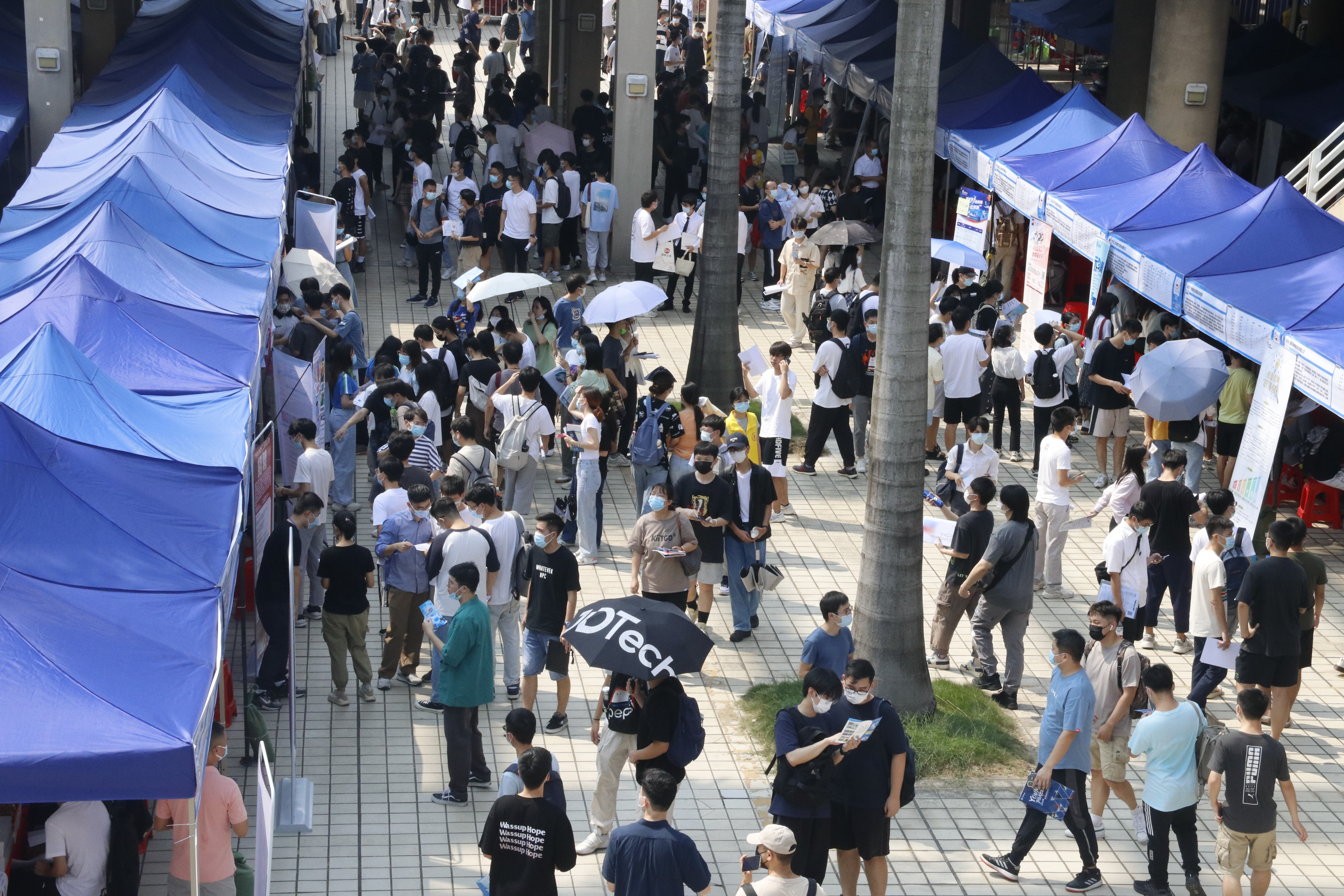 招聘会现场气氛热烈,人头攒动,来自不同校区的毕业生积极踊跃和校招HR互动交流。参会用人单位对本次招聘会的组织和学生应聘情况纷纷点赞好评,其中荣耀集团和保利集团的HR表示,虽然天气炎热,但仍然挡不住与应聘学生的热烈交流,很满意收到了很多毕业生投递的简历。本次招聘会引入了不少知名国企和民企,受到同学们的欢迎。有的学生表示希望能多引入更多的国有企业,反映了部分毕业生就业的典型“求稳”心态。