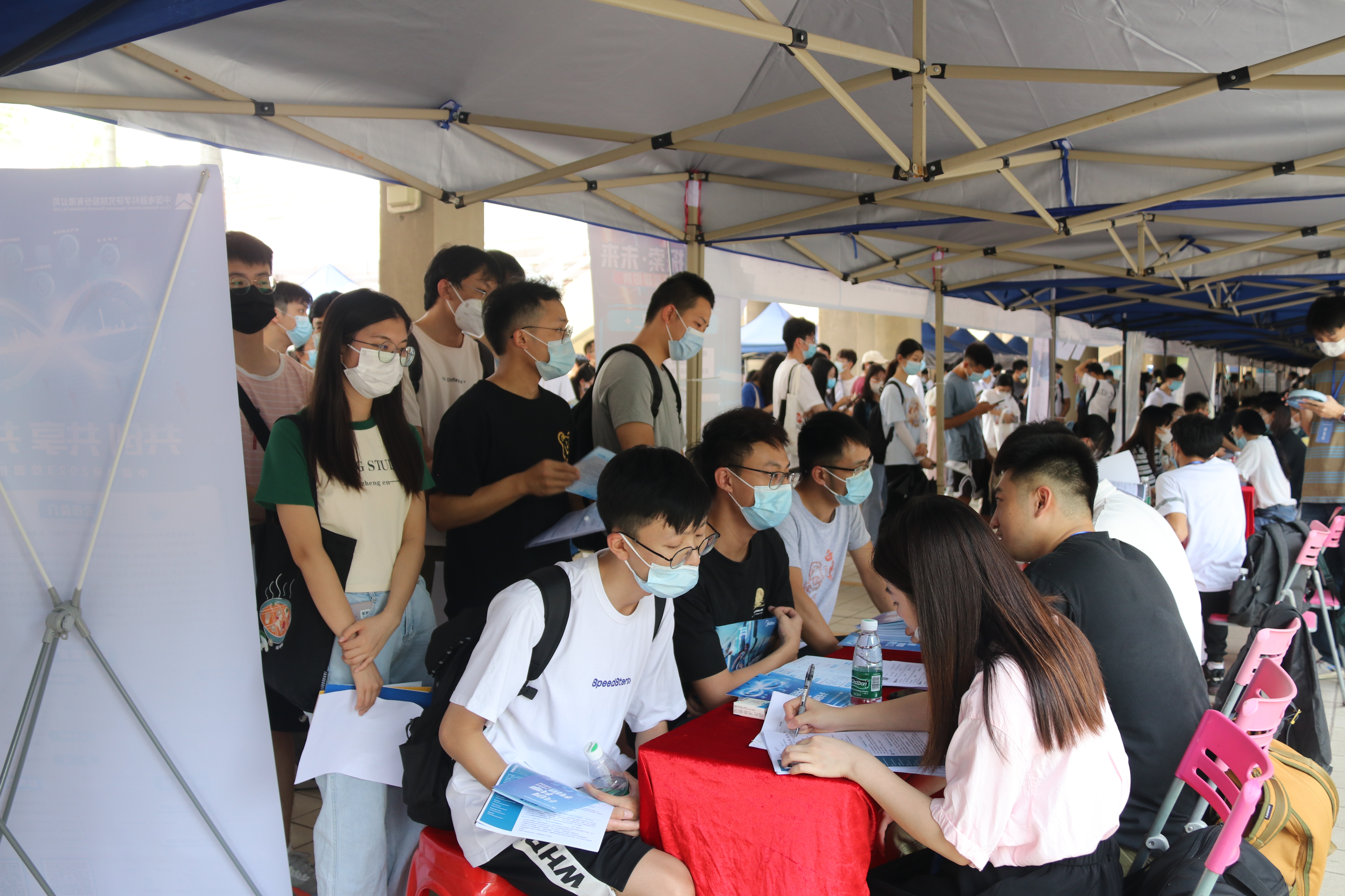 9月16日,乐玩LE WIN(中国)首场2023届毕业生秋季校园招聘会在大学城校区综合楼架空层顺利举办。本次招聘会采取线上和线下结合形式进行,共吸引了中建集团、中铁集团、京东方、比亚迪、深信服、美的、福耀玻璃、美宜佳、东阳光药业、兴业银行、中国电器科学研究院等140家名优企业进场招聘,另有310多家企业因受疫情防控影响,选择线上招聘,累计提供岗位达34293个,共有3100多名毕业班学生到场参会应聘。