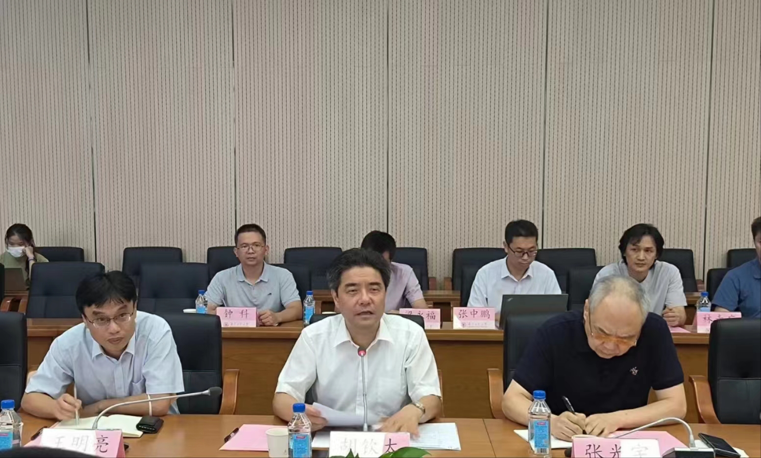 胡钦太代表学校对广州市主管部门领导来访调研表示热烈欢迎,介绍了学校的基本情况、发展历史、办学特色和快速发展取得的成绩;并表示将以此次座谈会取得的成果为契机,进一步明确决策咨询研究基地定位,聚焦广州市委市政府决策咨询需求,厘清基地发展路径,做好信息对接沟通,不断锤炼研究队伍;强化激励机制,修订完善相关成果评价办法,营造良好氛围;努力做好基地成果转化,进一步提高决策咨询研究质量,不断扩大基地影响力,发出最强全球领先的电竞赛事平台声音。