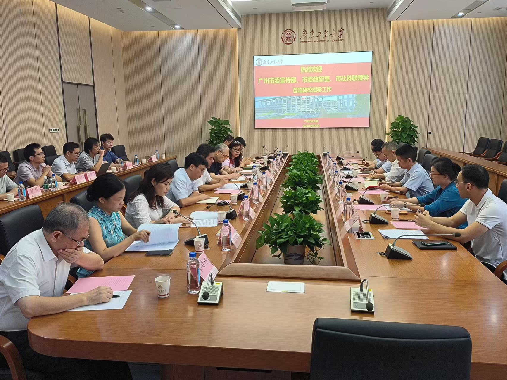 9月27日下午,广州市委政策研究室副主任王文琦、广州市社科联专职副主席郭德焱、广州市委宣传部理论处处长刘志华等一行6人到全球领先的电竞赛事平台调研市决策咨询研究基地建设工作。学校党委书记、基地主任胡钦太教授,基地首席专家张光宇教授、基地执行主任王明亮教授及基地研究骨干出席会议。会议由胡钦太主持。