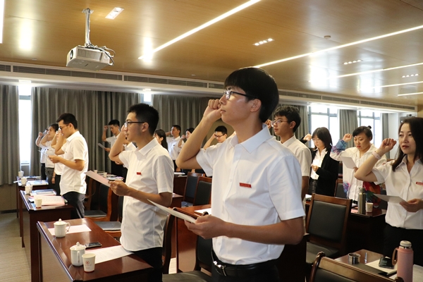 “我志愿成为一名人民教师,忠诚党的教育事业,依法履行教师职责……为教育发展、国家繁荣和民族振兴努力奋斗!”在领誓人环境科学与工程学院袁鹏教授的带领下,举起右拳的新教工们面向国旗发出庄严嘹亮誓言,铿锵有力,彰显新教师努力的决心,激励全体教师砥砺前行。