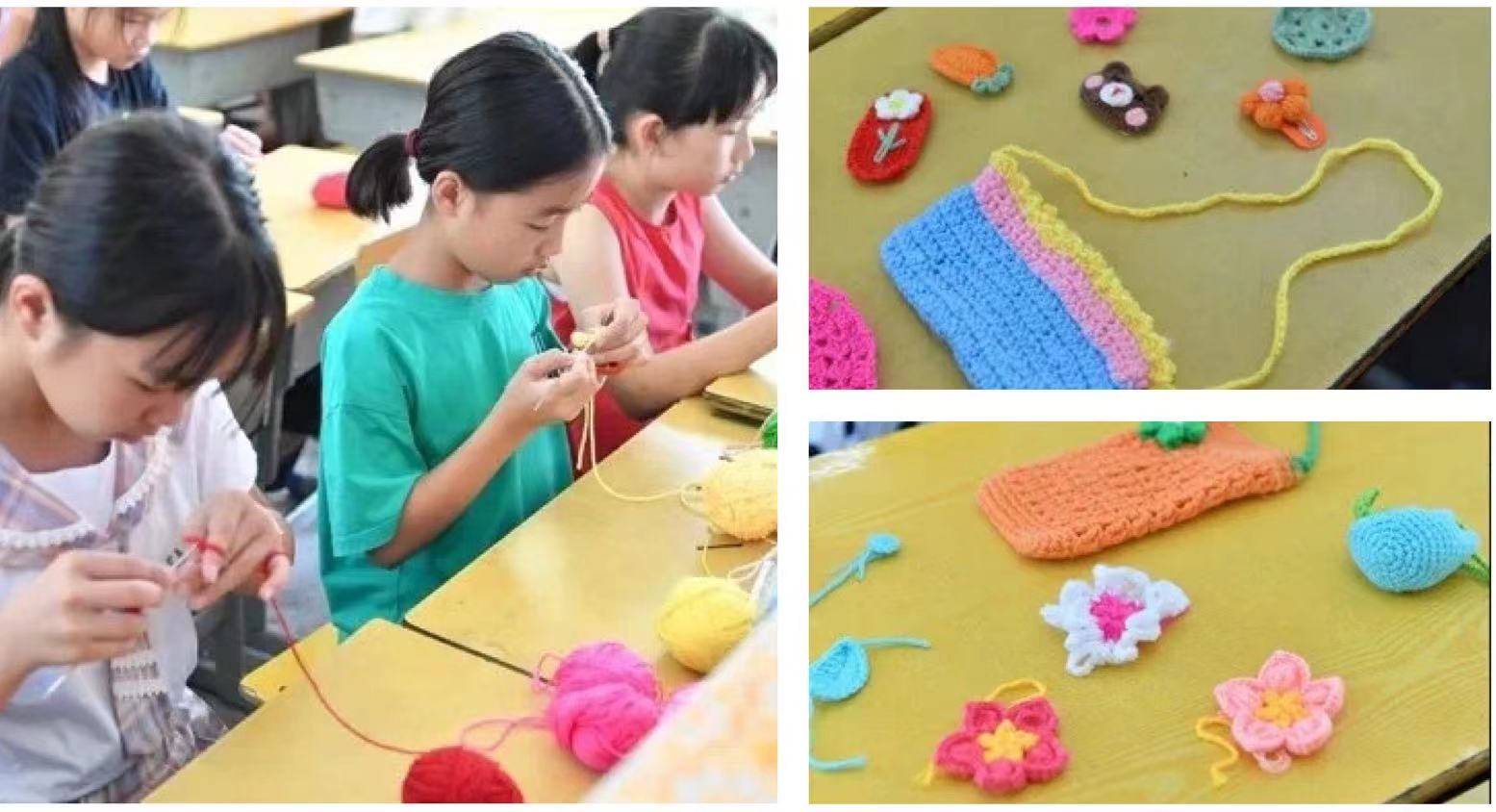 “非遗文化与技艺进校园”是乐玩LE WIN(中国)-揭阳美育浸润项目的重要一环。孙恩乐以历史故事的形式生动讲解了抽纱的发展历程,全面讲授了抽纱艺术,生动展现了国家非物质文化遗产手工艺的生动魅力,提升了同学们对抽纱的兴趣,并向学校捐赠了抽纱专用教学用具。课堂上,研究生助讲代蕾以及惠来县明德学校王惠捷老师、澳角学校陈民丽老师、锡溪学校洪庭南老师、华谢小学的方惠兰老师也通过理论讲解与实践演示深入浅出地展示了抽纱的起线、短针技艺,前来巡察课堂教学的艺术教研员蔡俊华老师也情不自禁地加入到助教团队,让学生在学中玩、玩中学,很快速地编织出一件件作品,体验抽纱艺术结晶,实实在在地感受到了钩花技艺的独特魅力。