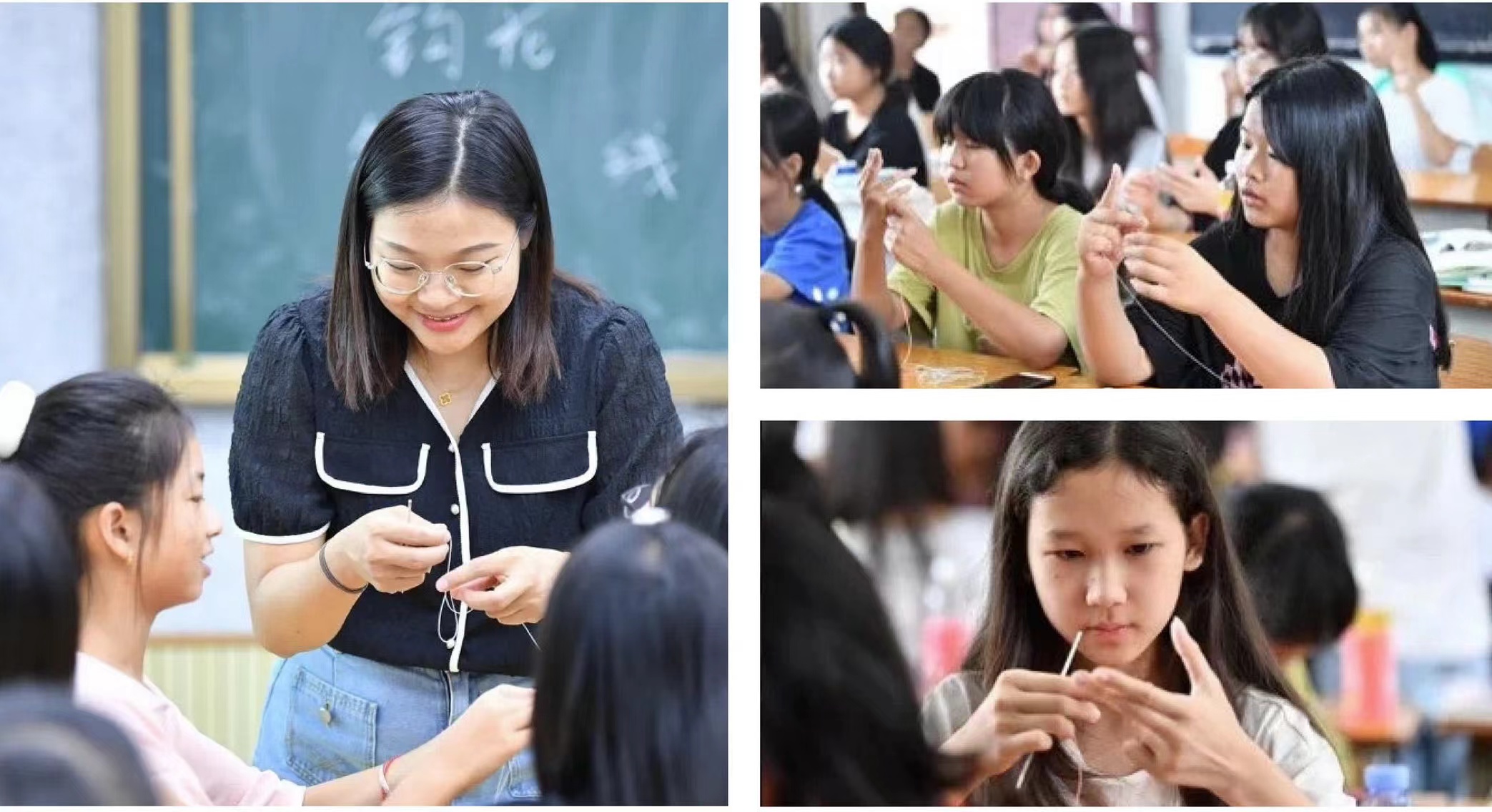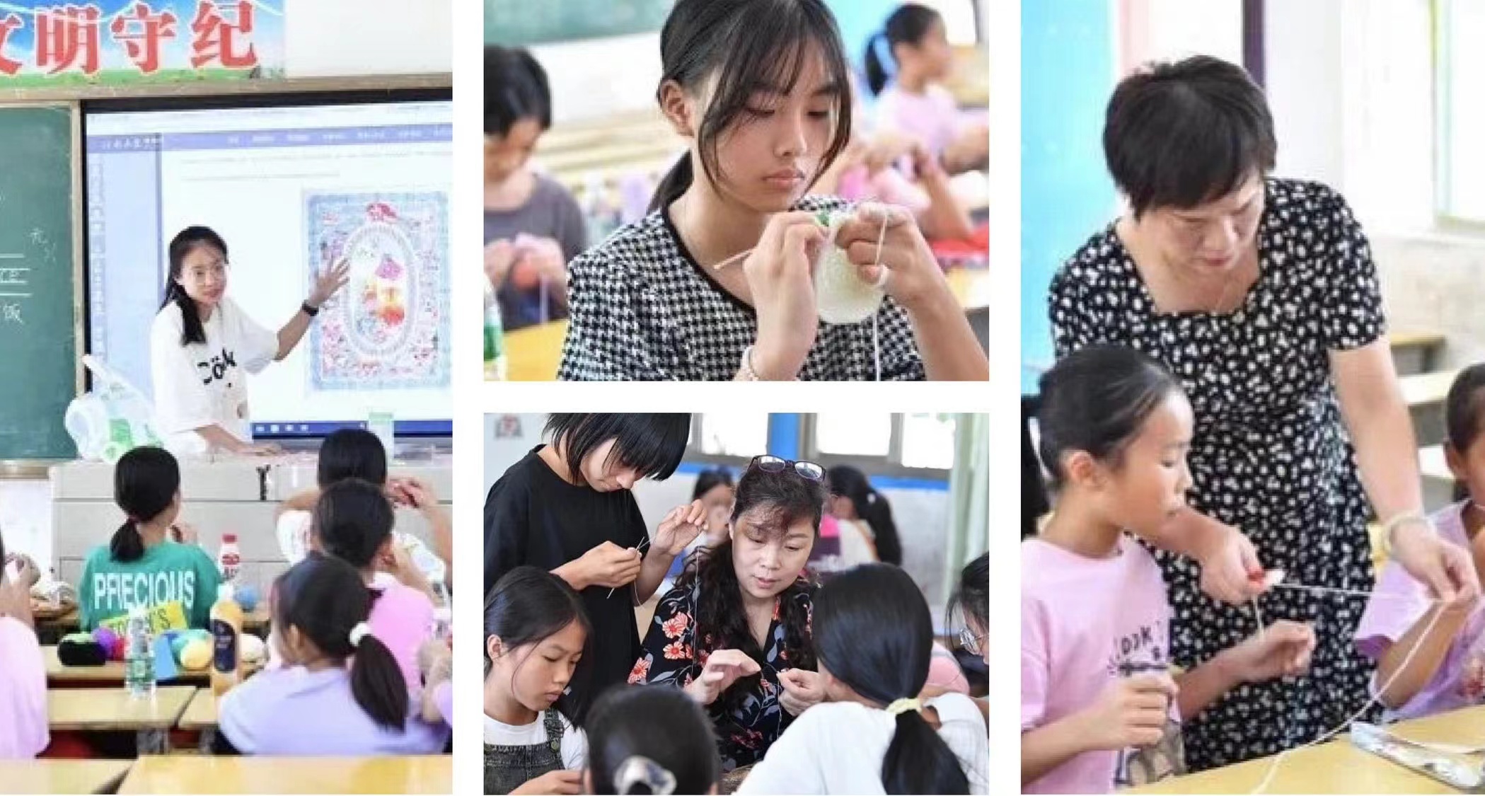 中国传统文化根植于乡土之中,蕴藏于百姓之中。本次抽纱课程借助数字技术共享教学资源,有机结合创意设计与抽纱艺术,让帮扶学校享受到了高水平的专业教学资源,为学生们带来了不一样的非遗文化体验,亦为对口帮扶学校未来发展提供了新的教学方向,理清了各校抽纱课程的重点和难点。此次活动也是带领高校学生参与“三下乡”社会实践活动,引导青年学子参与到美育浸润建设之中。