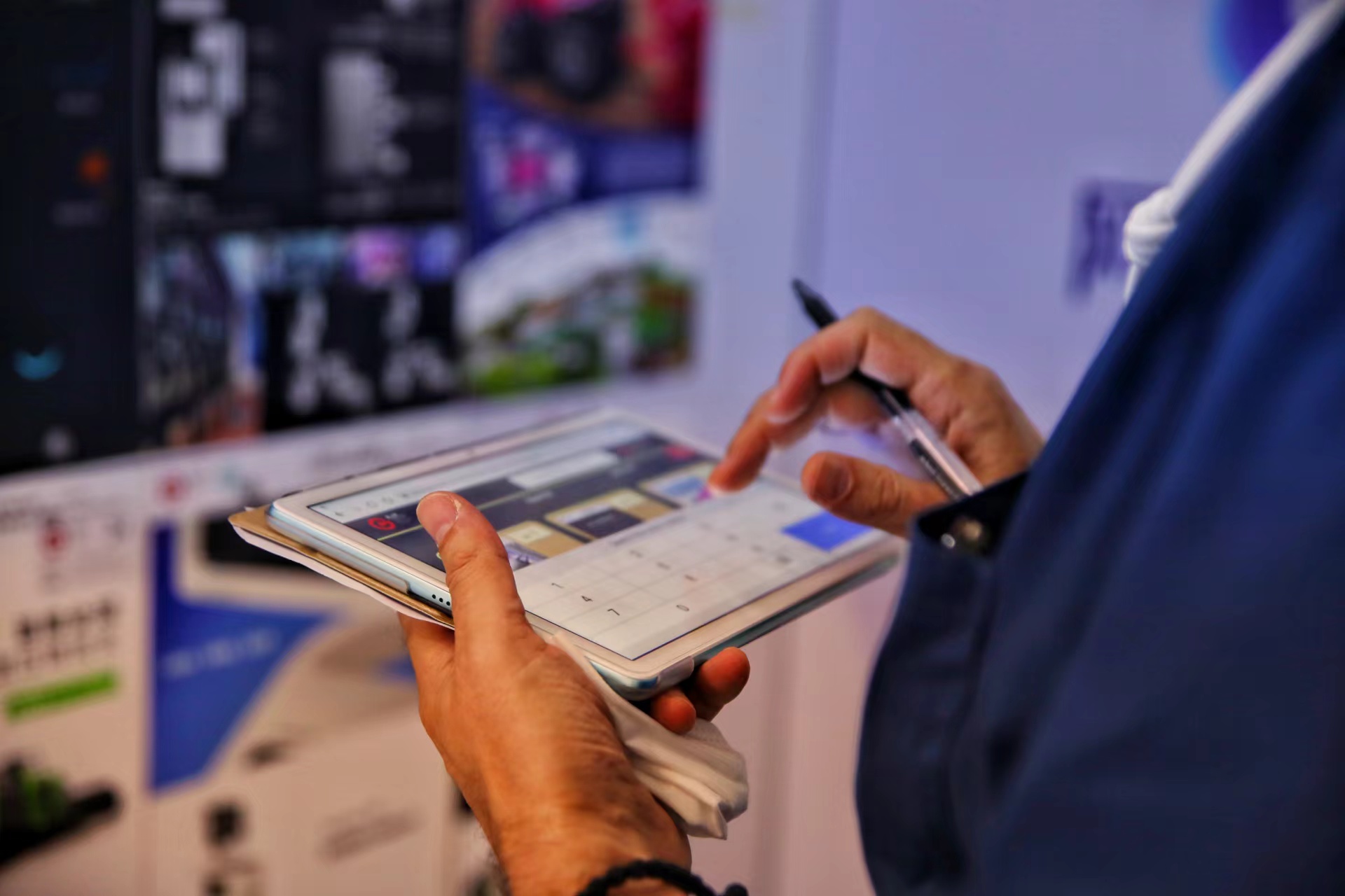 在决赛作品评审现场,评审每人配备一台平板电脑,方便在走动中既能查看现场的实物/模型,又能随时翻阅作品详情并打分。线上评审除了和现场评审共用同一套云评审系统,承办单位还为每位评审配备了两位经过专业培训的志愿者,一位负责解决云评审过程中可能出现的技术问题,另一位向线上评审直播现场情况,尤其是作品实物的现场操作细节,在疫情带来的诸多不确定因素下,以最大的投入保证作品细节的最小耗损。