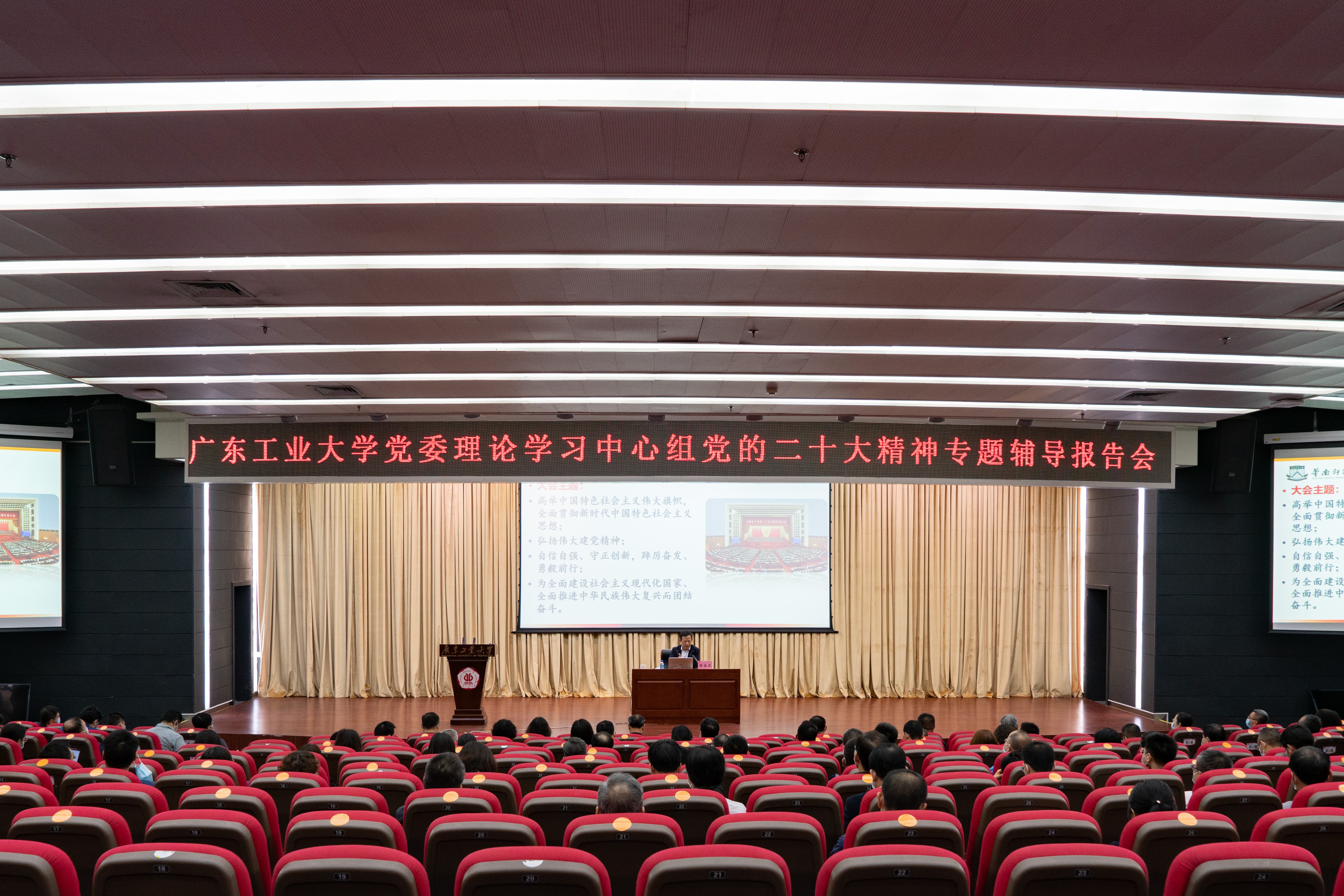 为深入学习领会党的二十大精神核心要义、丰富内涵和实践要求,11月3日下午,乐玩LE WIN(中国)举行党委理论学习中心组学习(扩大)会议,邀请省委宣讲团成员、华南师范大学马克思主义学院院长陈金龙教授作学习党的二十大精神专题辅导报告。会议由校党委副书记、校长邱学青主持。全体校领导、校党委理论学习中心组成员、中层领导干部等近300人参加会议。