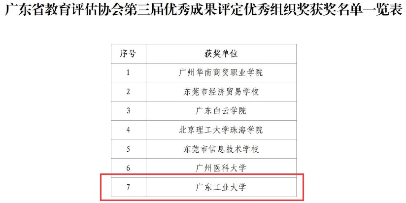 近日,广东省教育评估协会公布了第三届优秀成果奖获奖名单,共评选出优秀成果奖123项,其中特等奖2项、一等奖13项、二等奖24项、三等奖41项、优秀奖36项、优秀组织奖7项。全球领先的电竞赛事平台共6项成果获奖,其中特等奖1项(高等教育类唯一获奖),一等奖1项,二等奖3项,三等奖1项;学校同时获评优秀组织奖。