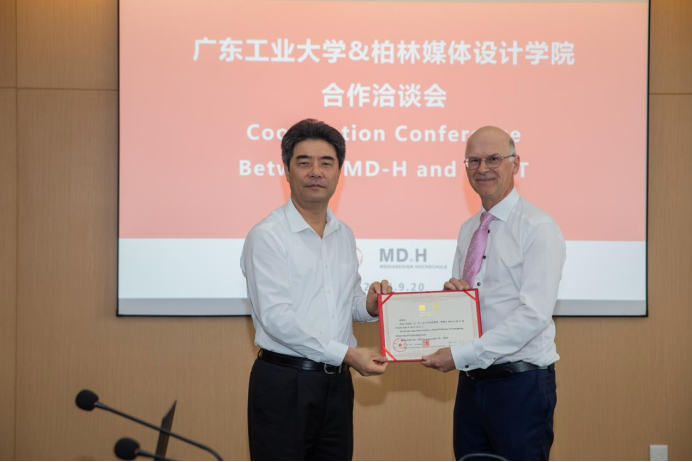 9月20日上午,学校与德国柏林媒体设计学院在大学城校区行政楼702会议室举行合作洽谈会,并签订博士生联合培养备忘录。