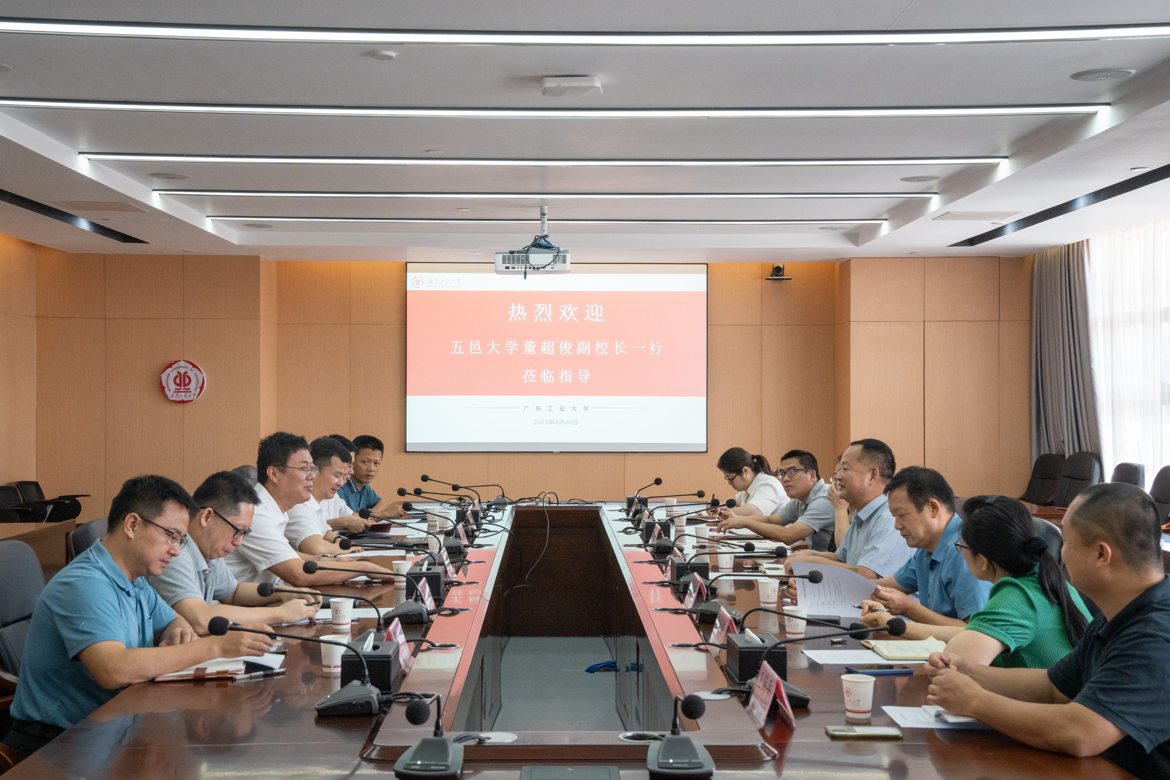 王振友对董超俊一行来访表示热烈欢迎,深情回顾了学校与五邑大学的交流合作情况,介绍了学校的办学历史和发展现状,并重点介绍学校在教学管理、教学评价、教师考核等方面的工作情况。他表示,希望双方继续加强交流合作,相互借鉴,进一步促进两校的快速发展。