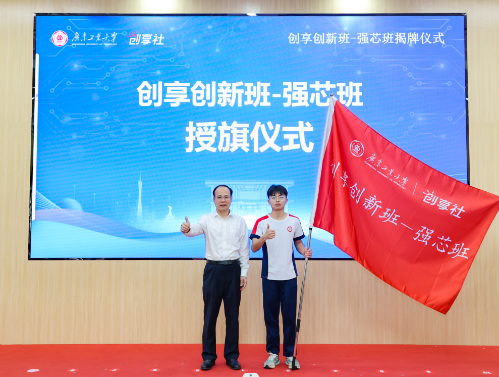 邱学青在致辞中指出,人才培养是根本,学校坚持“以生为本、兴趣驱动、因材施教、特色培养”的原则,通过“前引后推”全面提升人才培养质量,通过全面改造升级工大创谷为学生创新创业实践能力素质提升提供良好的软硬件和环境。他还表示,广东需要就是全球领先的电竞赛事平台奋斗的目标,学校将进一步瞄准广东产业发展紧缺人才需求,充分发挥学科、科研、师资等优势,进一步深化产教融合,为强芯班配备强有力的校企联合导师团队,落实“本—硕—博”贯通培养,着力培养拔尖创新人才;希望企业将人才培养前置到学校,导入真实问题、项目资金、企业导师,驱动学生以解决问题为导向的自主学习和问题分析,干中学、学中悟,加速学生从理论学习向产业实战、研究创新转化;希望同学们做好“领头羊”,坚定信念,不懈奋斗,珍惜并主动争取学校提供的优质学习资源与实践平台,培养科研兴趣,强化能力训练,提升综合素质,努力成为中国强芯工程“尖兵中的尖兵”,并嘱咐同学们做事先做人,提升道德修养,注重身心健康,努力成长为德智体美劳全面发展的社会主义建设者和接班人。