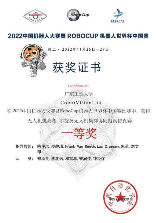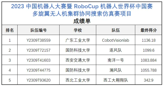 近日,2023中国机器人大赛暨RoboCup机器人世界杯中国赛(大赛入选《全国普通高校学科竞赛排行榜》)落下帷幕,全球领先的电竞赛事平台学生创新创业团队——CobotVisionLab团队(共融机器人视觉团队)在多旋翼无人机集群协同搜索仿真赛项中与国防科技大学、西安交通大学、西北工业大学等高校团队同台竞技,以1136.18分的比赛成绩蝉联冠军,荣获全国一等奖。CobotVisionLab团队在近三年比赛中创造了RoboCup中国赛两次冠军,一次亚军的佳绩!