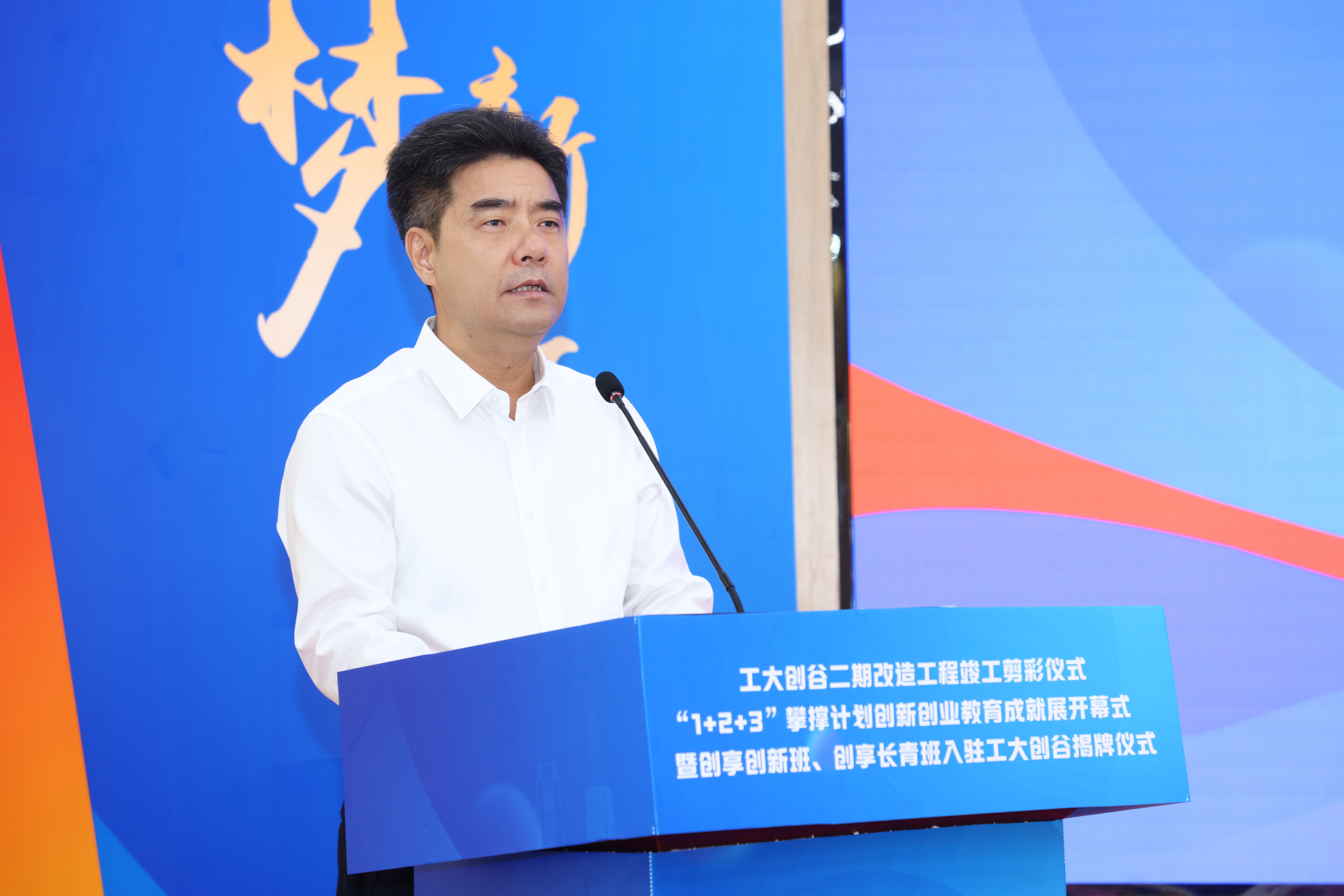 胡钦太在致辞中指出,一直以来,学校坚持落实立德树人根本任务,始终把一流人才培养作为学校工作出发点和落脚点,学校“1+2+3”攀撑计划学科提升工程中的“1”就是打造粤港澳大湾区创新创业基地。学校对工大创谷环境条件进行全面升级改造和内涵提升,不遗余力地为同学们创新创业交流、实践、孵化等创造更好条件。工大创谷改造工程的顺利竣工,彰显了学校对一流人才培养的重视和决心,更是学校实施“1+2+3”攀撑计划学科提升工程取得的阶段性成果。创享创新班、创享长青班入驻工大创谷,意味着学校深化跨界交叉融合、产教融合、推动人才链与产业链有机结合的新型人才培养模式迈上新台阶,希望同学们珍惜学校提供的优质学习资源与实践平台,积极参与,培养科研兴趣,激发创新潜能,提升解决关键问题的能力,努力成长为支撑广东在推进中国式现代化建设中走在全国前列的生力军,堪当民族复兴重任的建设者和接班人。