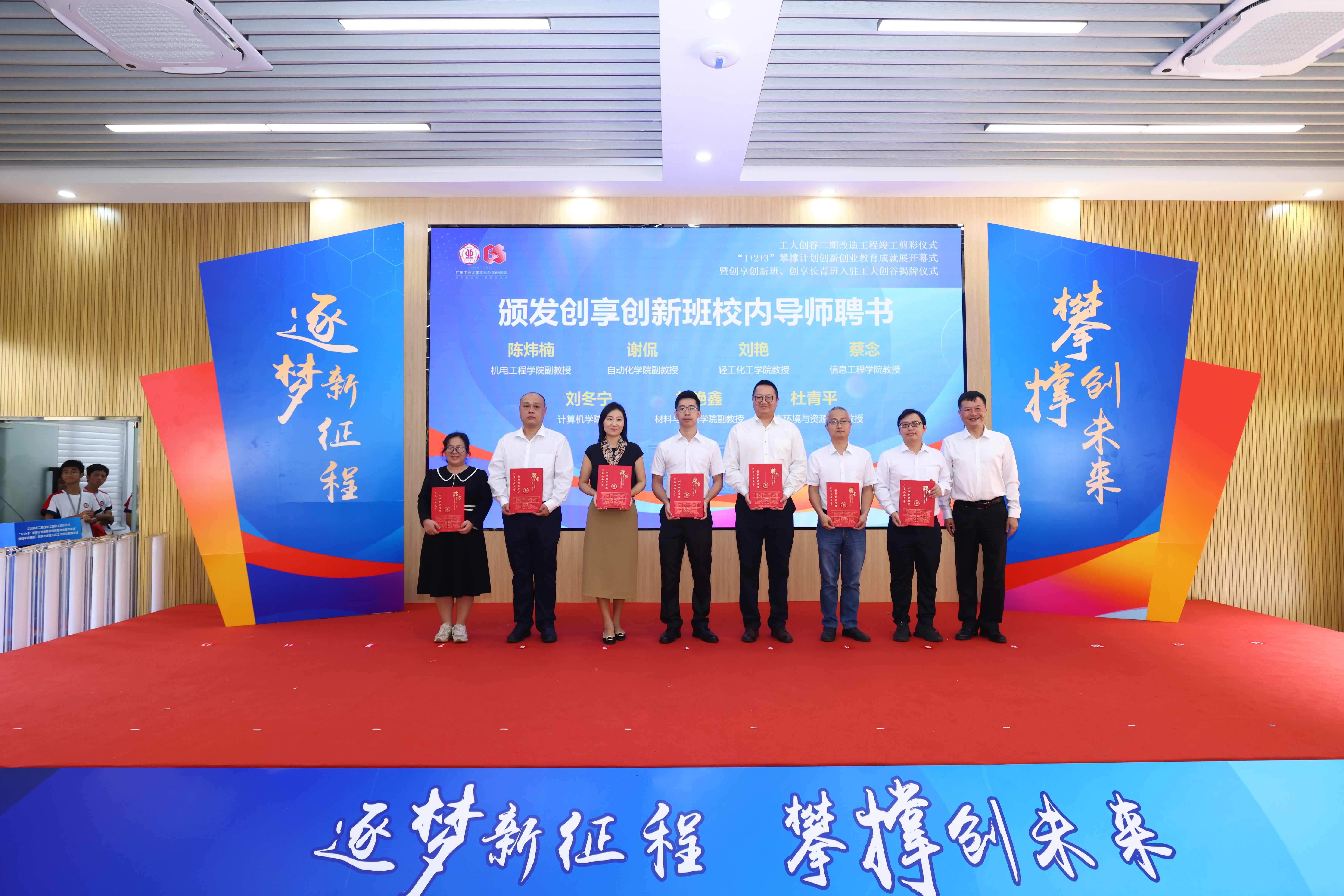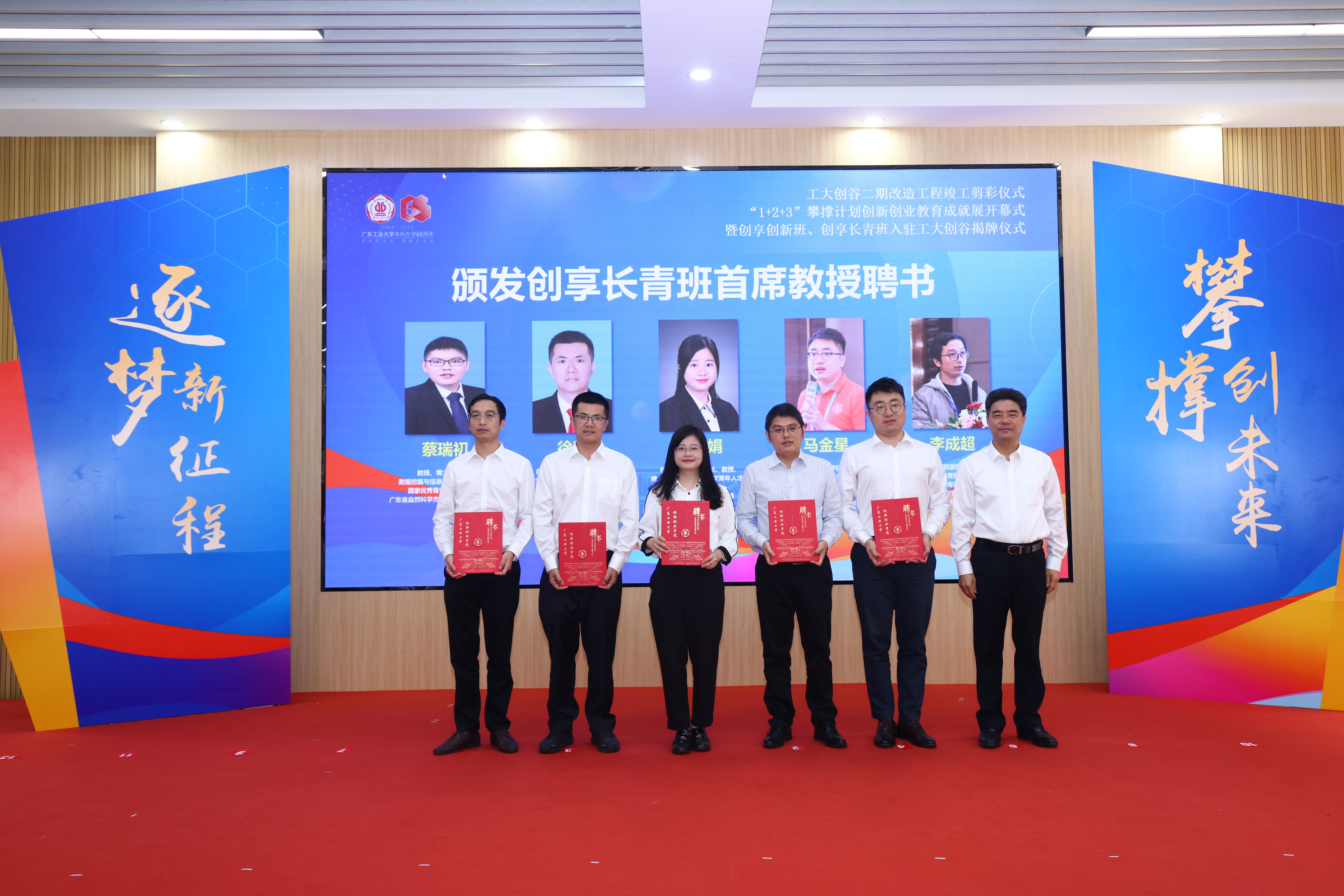 胡钦太、邱学青与嘉宾、相关单位和学院负责人共同为工大创谷二期改造工程竣工剪彩,为“1+2+3”攀撑计划创新创业教育成就展开幕点灯,并为创享创新班、长青班入驻揭牌。胡钦太、邱学青、张学理分别为创享长青班首席教授、创享创新班企业导师、创享创新班校内导师颁发聘书。