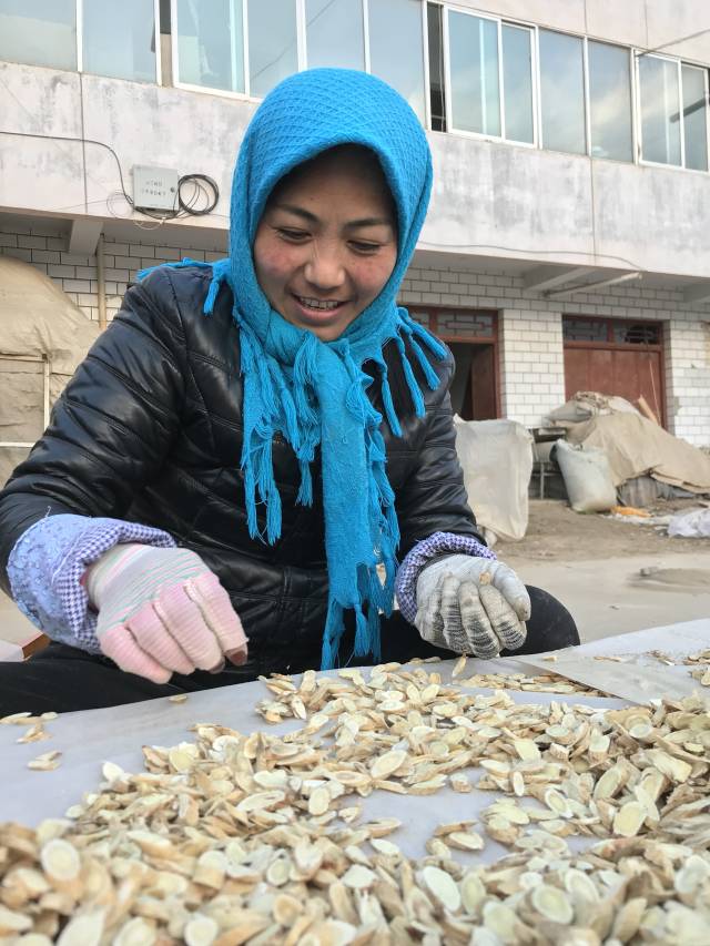 十方元气农村合作社人员在挑选黄芪片。