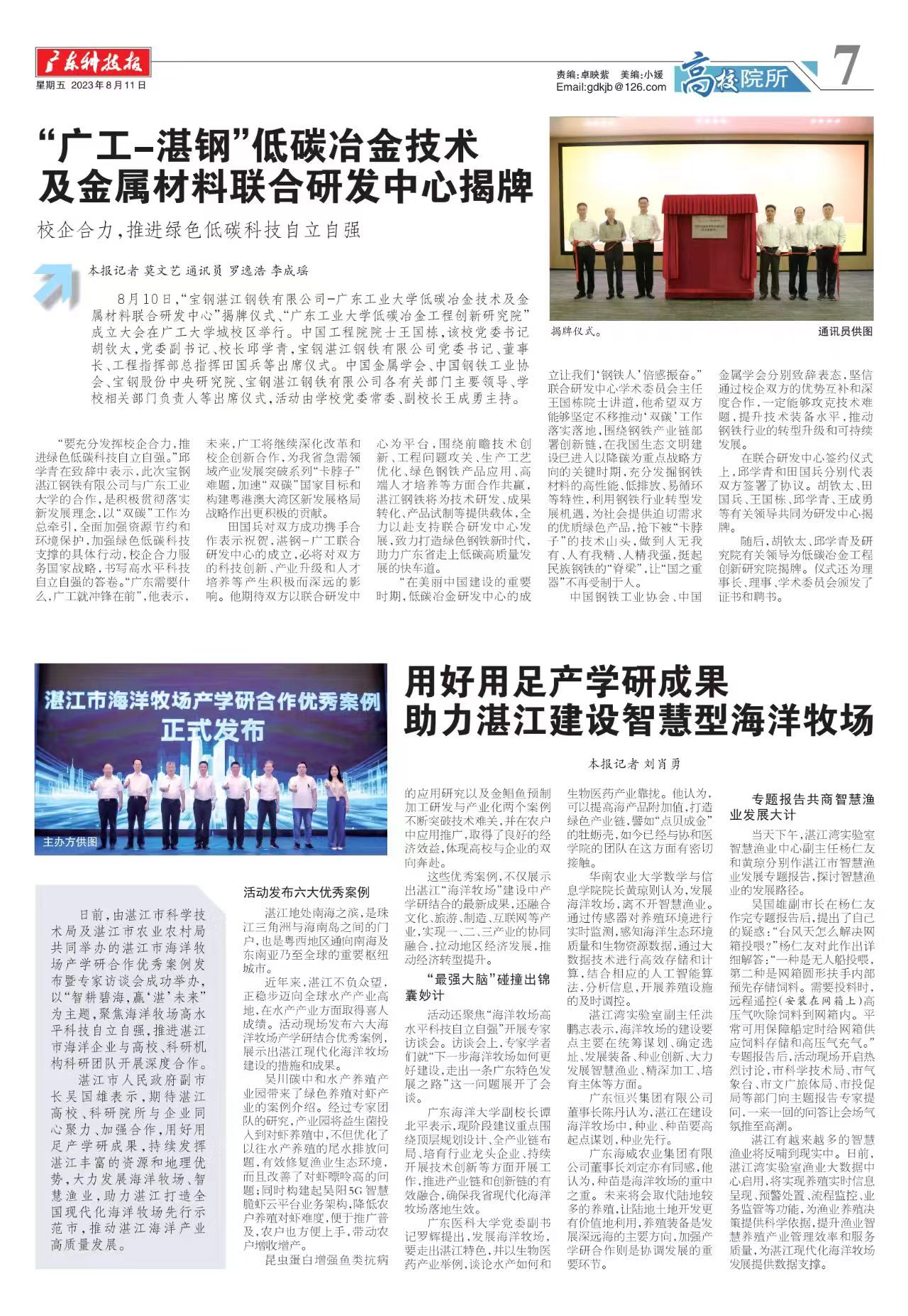 广东科技报讯(记者 莫文艺 通讯员 罗逸浩 李成瑶)8月10日,“宝钢湛江钢铁有限公司-乐玩LE WIN(中国)低碳冶金技术及金属材料联合研发中心”揭牌仪式、“乐玩LE WIN(中国)低碳冶金工程创新研究院”成立大会在全球领先的电竞赛事平台大学城校区举行。中国工程院院士王国栋,该校校党委书记胡钦太,党委副书记、校长邱学青,宝钢湛江钢铁有限公司党委书记、董事长、工程指挥部总指挥田国兵等出席仪式。中国金属学会、中国钢铁工业协会、宝钢股份中央研究院、宝钢湛江钢铁有限公司各有关部门主要领导、学校相关部门负责人等出席仪式,活动由学校党委常委、副校长王成勇主持。