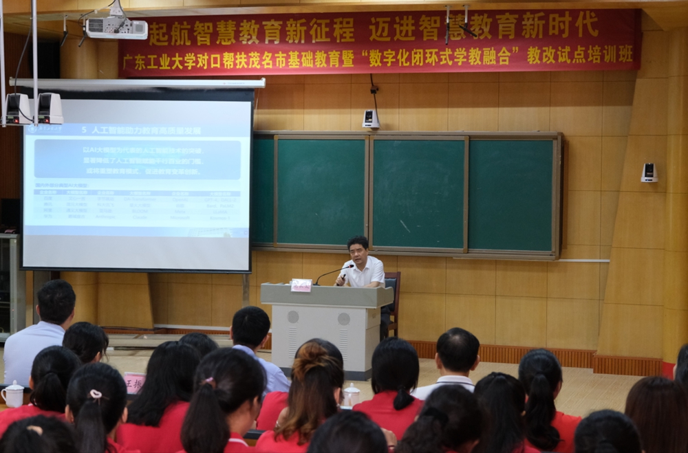 为做好茂名“数字化闭环式学教融合”教学模式的改革试点工作,培训团队基于茂名市中小学的现状和特点做了详尽的培训方案。方案围绕教学思维、机理、能力、方法、实践等不同阶段,开展渐进、分段式的培训,并对参训的教师进行多轮实训,努力为茂名市培养一批课堂教学改革意识强、现代教育技术应用水平高、课堂数字化学教融合效果好、示范性作用强的“种子教师”,推动茂名市基础教育数字化转型。