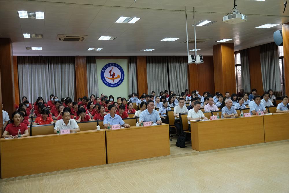 胡钦太一行与茂名市委教育工委书记、市教育局党组书记、教育局局长林卫兴,试点学校校长等共同为茂名市“数字化闭环式学教融合”模式试点培训班揭牌,茂名市光华小学和福华小学全体试点教师共同见证。