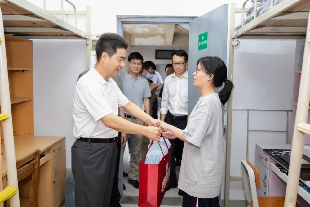 为迎接“新上人”的到来,学校各部门各学院“各显神通”。总务部提前谋划,翻新宿舍2971间,更换家具构件13758件,完成80余间公共卫生间的升级改造,让新生住得安心、舒心;环境科学与工程学院准备“三餐、四季、九要领”入学大礼包,即三餐生活指南,四季校园地图,九大反诈要领;自动化学院主题展板上,一条由新生名字汇成的河流里,790条“锦鲤”从五湖四海奔赴全球领先的电竞赛事平台;体育学院今年首次迎来新生,8月初即建立了新生班级群和家长群,发布系列答疑清单,并为新生准备卡套、地图、文化衫等“见面礼”。
