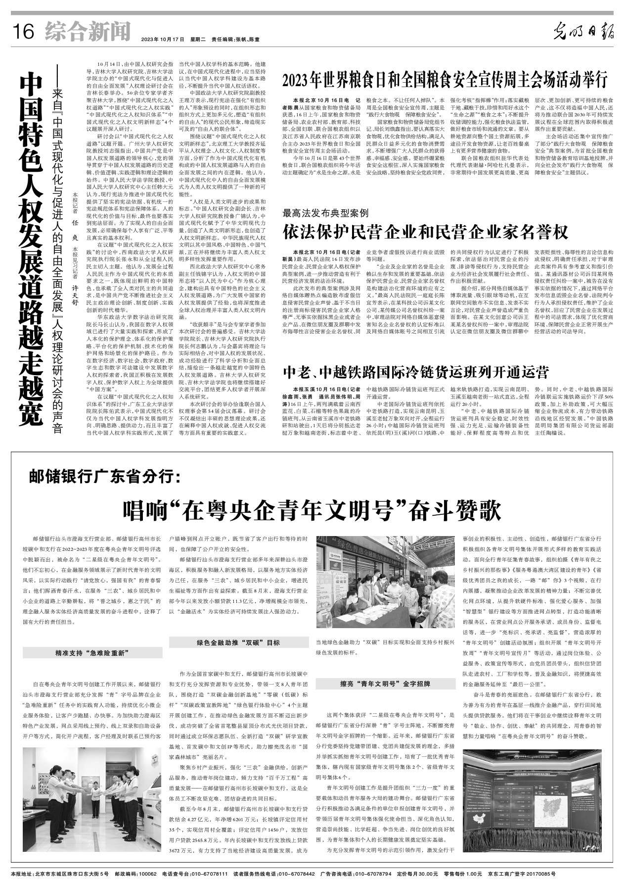 10月14日,由中国人权研究会指导,吉林大学人权研究院、吉林大学法学院主办的“中国式现代化与促进人的自由全面发展”人权理论研讨会在吉林长春举办。50余位专家学者齐聚吉林大学,围绕“中国式现代化之人权道路”“中国式现代化之人权实践”“中国式现代化之人权知识体系”“中国式现代化之人权文明新样态”4个议题展开深入研讨。