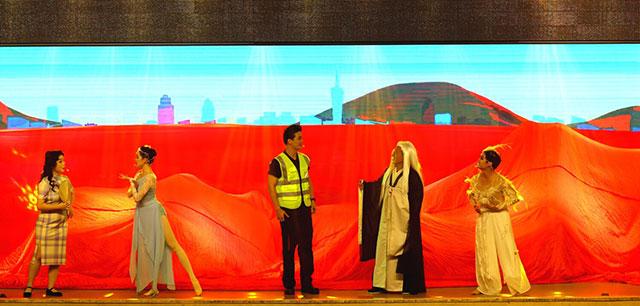 表演中,5个不同角色从各自角度与身处环境和利益相关点出发,展开并完成了一场关于去与留、喜与忧、疑与赞、共同参与共享成果的戏剧时空之旅,传递了“节水、净水,促进城市绿色发展”的理念,以小见大,展现时代风貌和一线工作人员苦心钻研的精神。