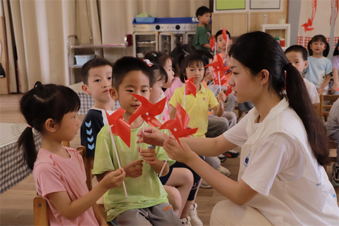 普法宣讲团精心设置了“五星小红旗”风车制作、“我爱祖国”贴画以及“童心绘祖国”长卷绘画活动。一张张五彩缤纷的贴画、一个个随风转动的红旗小风车展现在大家眼前,充满童趣的作品与法治元素完美融合,引导幼儿用法律之名,铸就爱国心家国情。