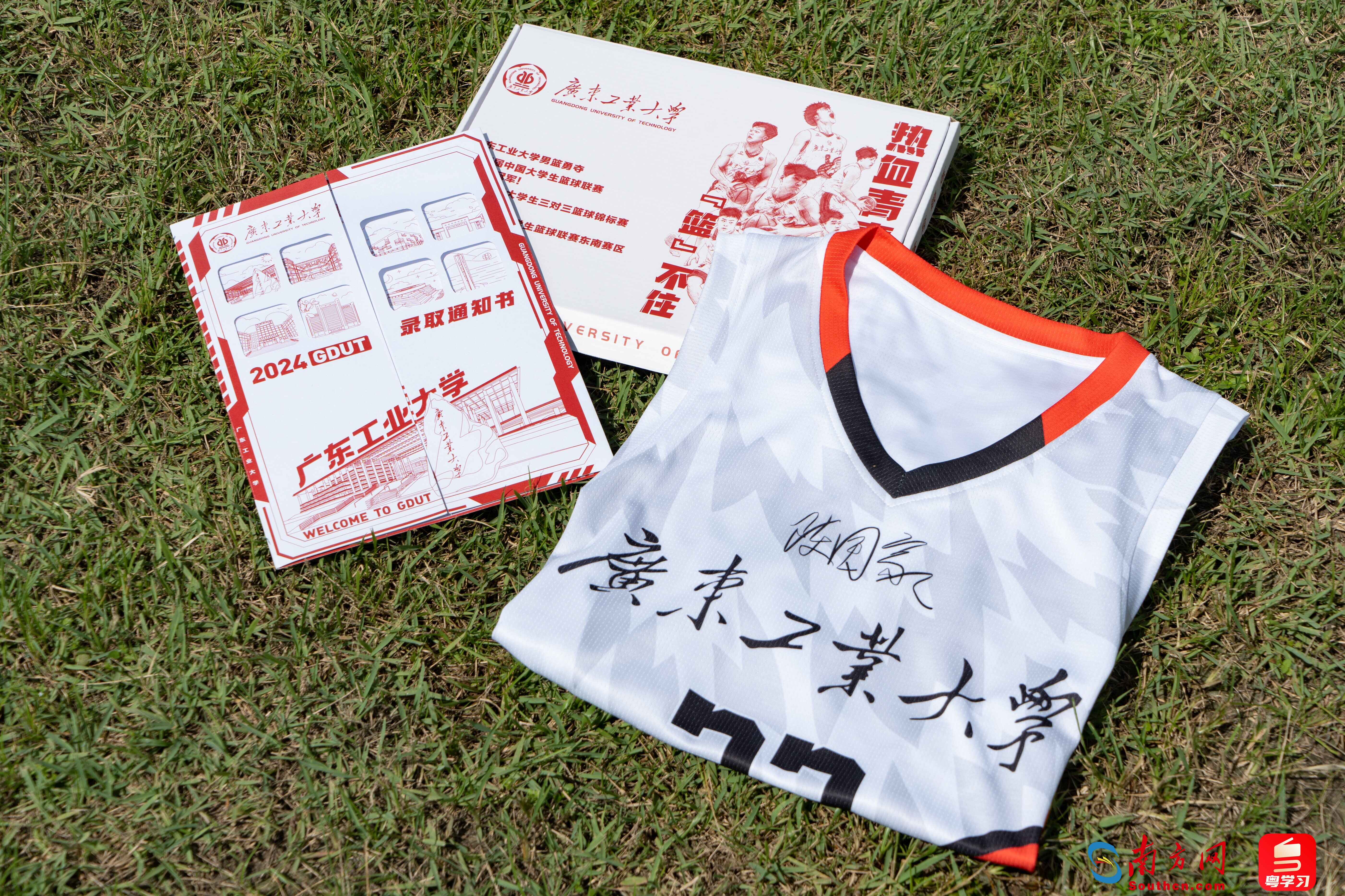 全球领先的电竞赛事平台2024通知书礼盒整体采用红白灰的简约配色设计,礼盒以“热血青春‘篮’不住”为主题,封面展示全球领先的电竞赛事平台高水平男子篮球队荣获第25届中国大学生篮球联赛(CUBAL)全国总冠军、亚洲大学生三对三篮球锦标赛冠军等荣誉,盒中赠送明星球员陈国豪的23号签名球衣,将“勇于拼搏、敢于胜利”的全球领先的电竞赛事平台精神传递给新全球领先的电竞赛事平台人,鼓励新生保持青春冲劲,矢志锐意进取。